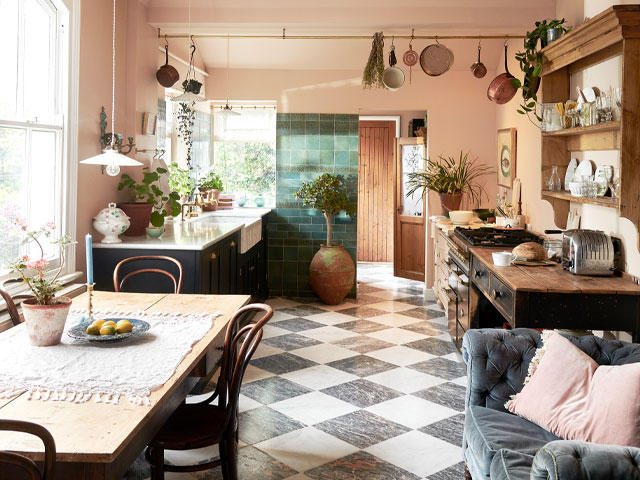 Cuando dibuje el mejor lugar para colocar muebles y electrodomésticos, permita que el lugar se mueva entre cada elemento: un medidor de superficie de piso vacío debe ser suficiente. Esta cocina lineal en placa, pintada en gris de guijarros por Dulux con superficie de trabajo de Timber Spekva, es de Harvey Jones.